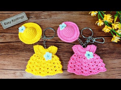 Crochet Dress and Hat Keychain Link Easy Crochet Keychain Step By Step For Beginners _ Crochet dress Keychain _ Crochet Hat Keychain