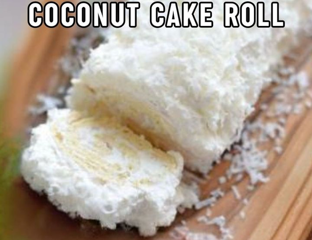 Optionally, dust the top of the cake roll with powdered sugar or sprinkle with additional shredded coconut.