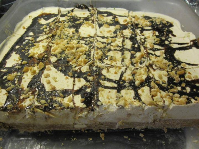 Directions:1. Mix first four ingredients together and press into a 9 x 13 pan. Put in the freezer for 15 minutes.
