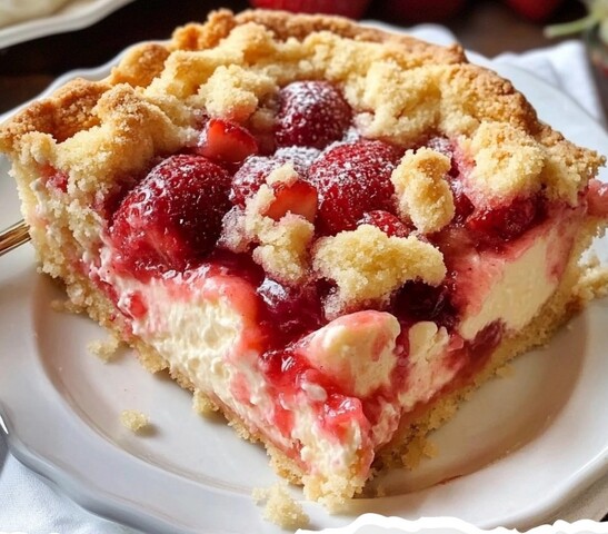 Drop spoonfuls of the cream cheese mixture over the strawberry filling, spreading slightly.