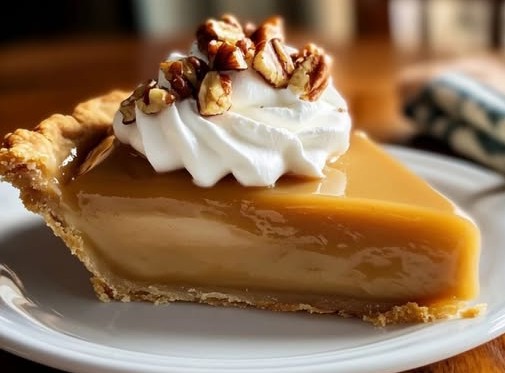 Before serving, top the pie with whipped cream and sprinkle with chopped pecans.
