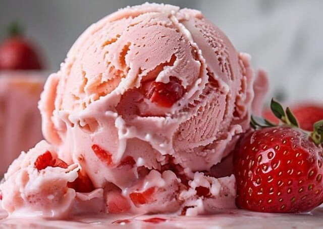 4. Serve and enjoy: Once firm, scoop into bowls and garnish with fresh strawberries. Enjoy this delicious and creamy homemade ice cream