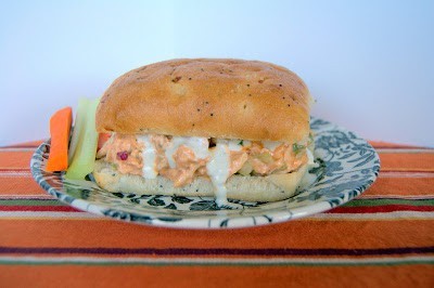 Place some chicken salad on the bottom of a sandwich roll and drizzle with the Cover with top and serve with celery and carrot sticks