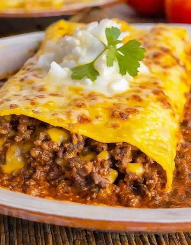 Serve the enchiladas hot, and top with chopped onions or chopped cilantro just before serving.