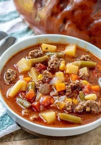 Mix in your beef broth, tomatoes, tomato soup, Worcestershire sauce, Italian seasoning, vegetables and potatoes.