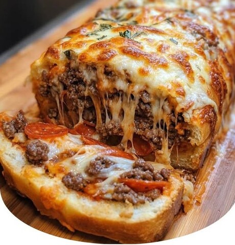 Top the cheese with your choice of fillings —pepperoni , sausage crumbles , bell peppers , onions , black olives , and any other toppings you love. Be sure not to overload the bread so it stays intact when slicing.