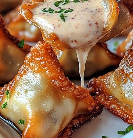 Crispy Chicken Wontons with Sweet and Spicy Cream Sauce