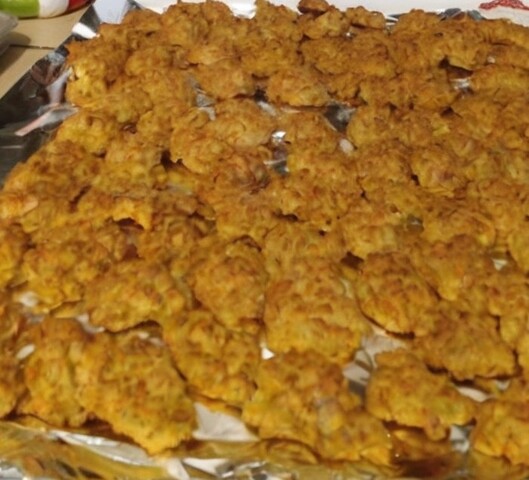 Place all of the ingredients in a large mixing bowl and stir very well until a uniformed dough forms, spoon into small balls (I use 2 tea spoons) and place on well greased cookie sheets, Bake at 350° about 18-20min. or until balls brown on top