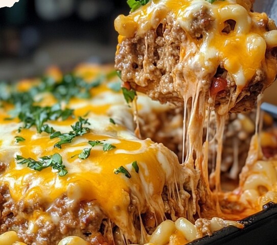 Assemble the Casserole: Spread the cooked macaroni and cheese sauce over the baked meatloaf. Drizzle the remaining ketchup and BBQ sauce on top, then sprinkle the remaining shredded cheese.