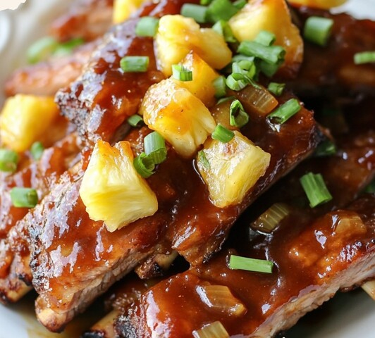 Serve & Enjoy: Plate the ribs, spoon the pineapple sauce over them, and serve with rice or veggies.