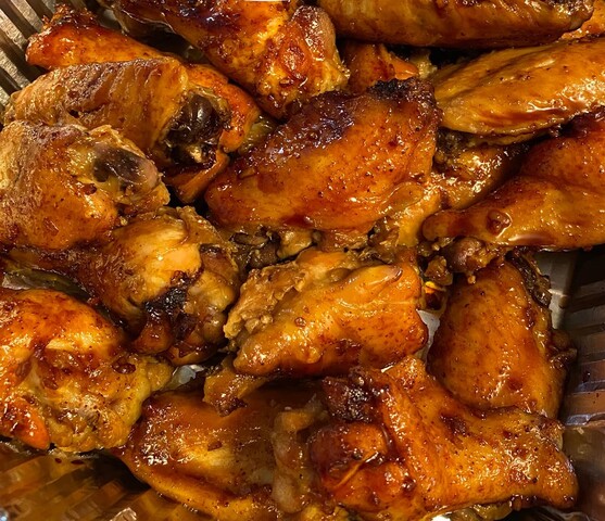 Line a rimmed baking sheet with parchment paper. Using tongs, add wings to the prepared pan. Make the basting sauce: