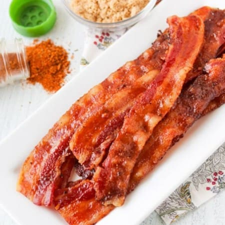 As the bacon approaches the final minutes of baking, be sure to check each pan for doneness. Depending on your oven, one pan may cook more quickly, so be sure to adjust cooking times accordingly. It may be necessary to remove one pan from the oven before the other. ALWAYS know that when baking your bacon in the oven, it can go from being cooked perfectly to burnt in no time.