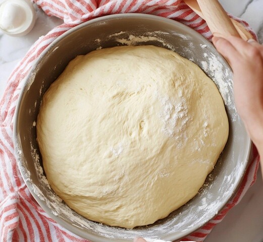 First Rise: Place the dough in a greased bowl, cover with a clean towel, and let it rise for about 1 hour, or until doubled in size.