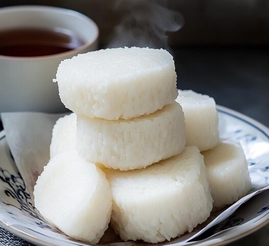 Steam the Rice Cake: Grease a round cake pan or small molds and pour the batter in, filling only about ¾ full.